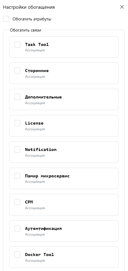 - Выбор связей для рекурсивного обогащения – позволяет указать, какие связи следует обогащать.